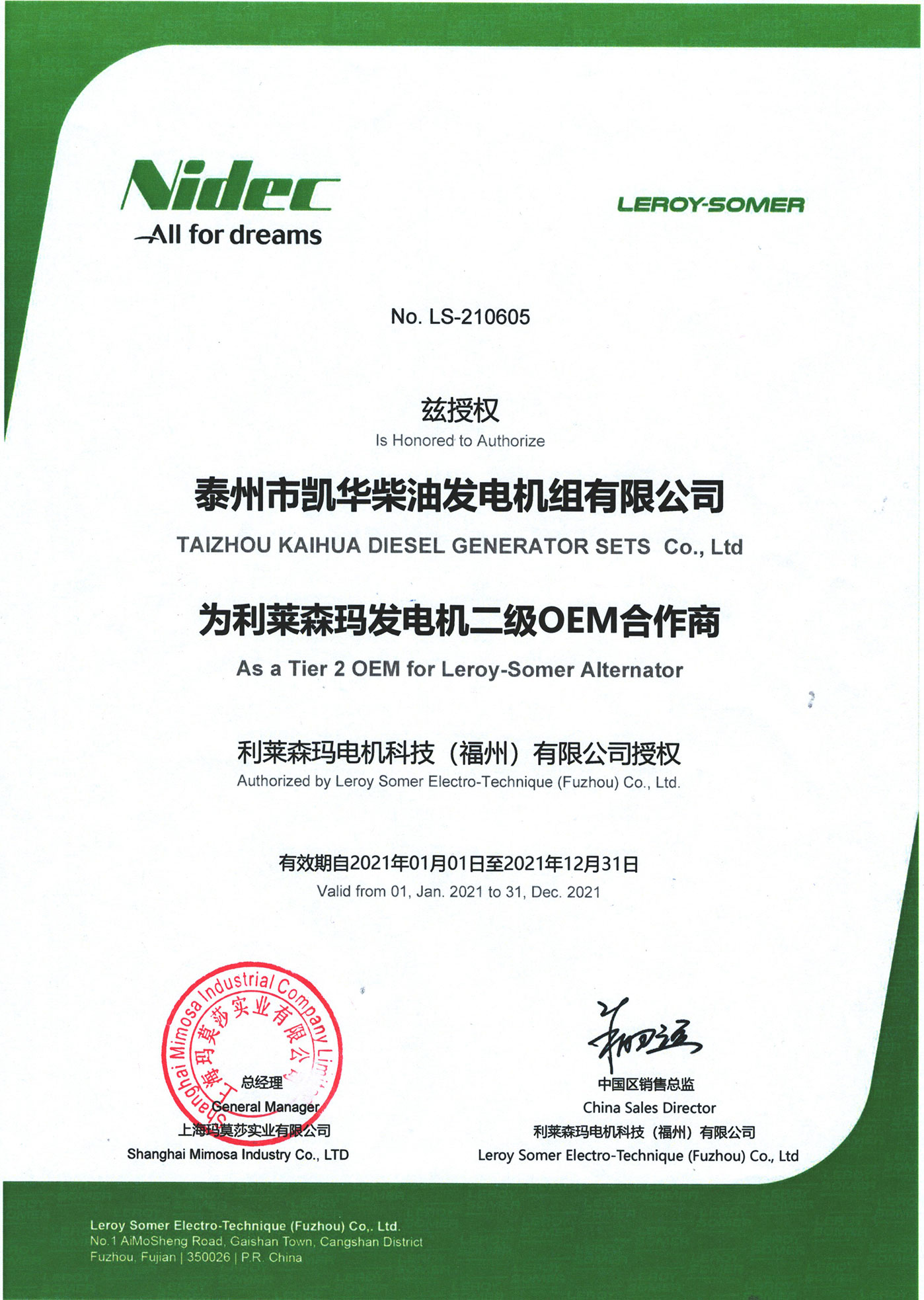 泰州市凱華柴油發電機組有限公司創建于2003年,是一家集柴油發電機組燃氣發電機組的研發、生產、銷售為一體的高新技術民營企業,公司座落于“漢唐古郡,淮海名區”,具有“鳳凰城”美稱的祥泰之州——江蘇省泰州市,地處中國經濟最發達的長三角經濟圈,水陸空立體交通,地理位置十分優越。公司目前注冊資本金11800萬元人民幣,生產基地占地六十畝,現有各類高素質員工一百多名,專業技術人員達46人,其中高級技術人員16人,年銷售額近6億元。